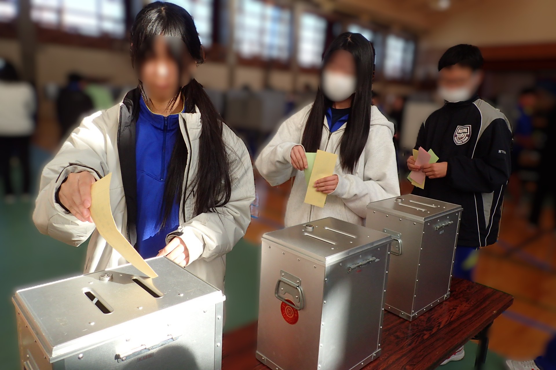 いよいよ生徒会も2年生に引きつがれます。学年から選出された候補者の中から、全校生徒の投票で次年度のリーダーが選ばれます。